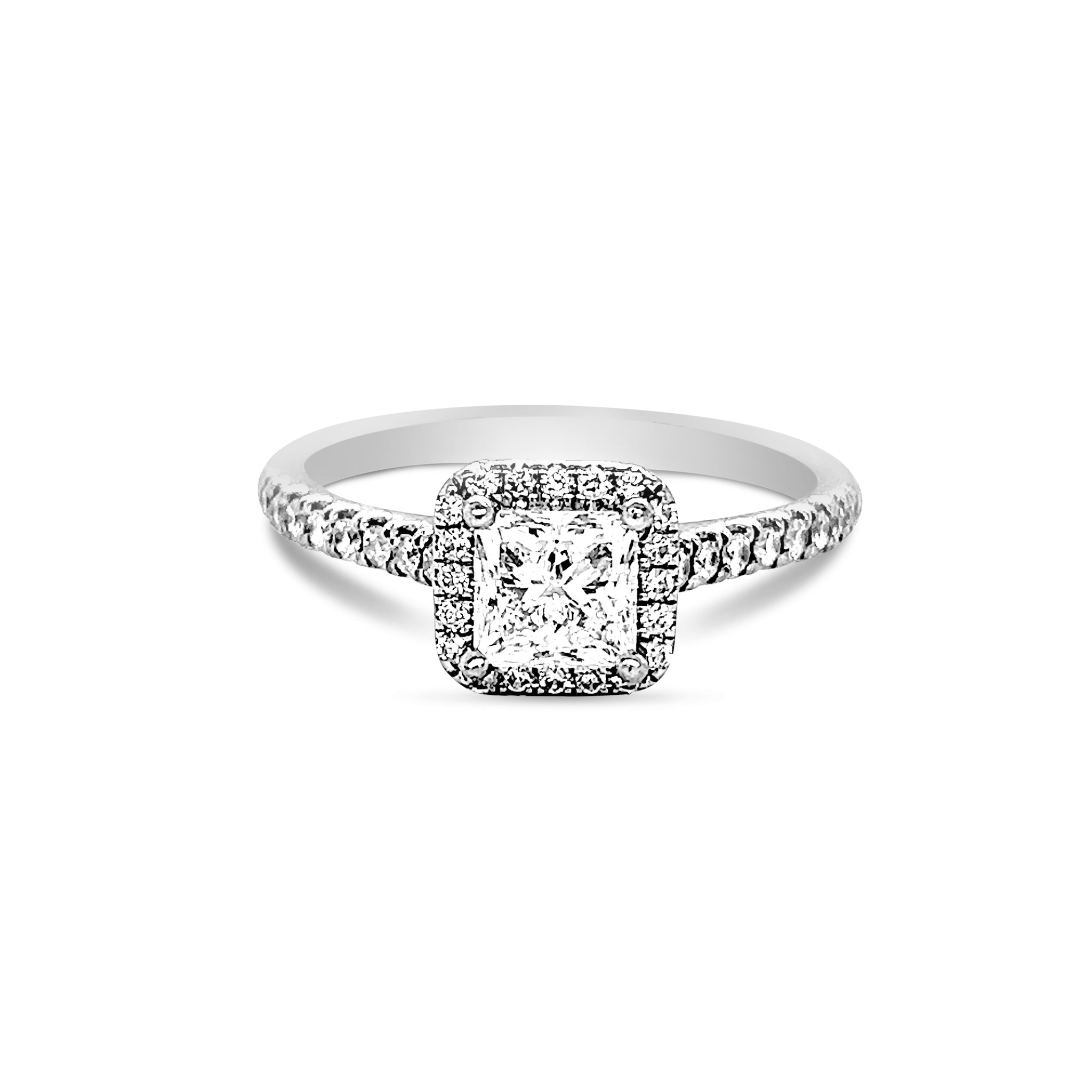 Platinum Princess Cut Diamond Halo Wedding Ring
